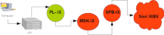 Powyżej został zaprezentowany schemat (ostatni rysunek) infekcji. Użytkownik, wchodząc na stronę będącą pod kontrolą RBN i jednocześnie przeprowadzającą ataki, poprzez lokalnego dostarczyciela internetu łączy się z polskim węzłem wymiany IP, który łączy się z moskiewskim będącym pod kontrolą RBN tak samo, jak petersburski, dalej pakiety kierowane są na konkretne serwery RBN, gdzie następuje zarażenie komputera.