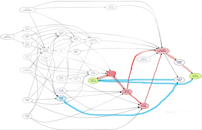 Pewnego listopadowego wieczoru, wielu specjalistów wgapiając się w swe monitory zadawało sobie pytanie, czy aby nie przyszedł ten moment, w którym człowiek powinien zrobić sobie chwilę przerwy. Cała sieć RBN zniknęła. Nie był to pierwszy tego typy przypadek, ale pierwszy, kiedy sieć przestępcza zamilkła na długo. Przerwa nie była wynikiem działań policji, powstała na skutek ciężkiej pracy RBN. O ich działalności w świecie robiło się coraz głośniej i chciano o nich wiedzieć coraz więcej. A branża, w której pracowali nie lubi rozgłosu. RBN potrzebował czasu na reorganizację. W 2007, mimo tego, iż przedstawiciele RBN twierdzili, że to, co piszą o nich specjaliści od bezpieczeństwa w internecie to jedynie zbiory domysłów (guesswork) o organizacji coraz więcej widziano. Postaram się przedstawić fakty, które udało się ustalić specjalistom. Poniższy rysunek nie jest dziełem malarza abstrakcjonisty, prezentuje on przepływ szkodliwego oprogramowanie pomiędzy serwerami RBN i sieciami zewnętrznymi. Do sieci RBN należało 2090 domen hostowanych na 406 serwerach.