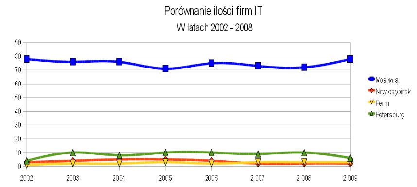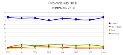 Niestety dysponuję jedynie danymi finansowymi stu największych firm IT Rosji. Wydaje się, że z powodu specyfiki roku 2009 dane te nie będą oddawały w pełni obrazu. W latach 2000 – 2008 można było uważać, dane te za transparentne dla całego rynku, gdyż jak już wspomniałem, rósł on równomiernie, co zostało dokładnie opisane w tym artykule. Rok 2009 był rokiem zawirowań, co doskonale zaprezentują dane przedstawione w niniejszym opracowaniu. Wydaje się, że nie można mieć pełnego zaufania do tezy, że dane stu największych firm mogą reprezentować obraz całego sektora, gdyż w większości są to duże firmy o ugruntowanej pozycji rynkowej, często posiadają duże kontrakty państwowe, co miało niebagatelny wpływ na ich kondycję finansową w czasie kryzysu, o czym będzie jeszcze mowa w tekście. Choć z drugiej strony dane te nie są na tyle silnie odkształcone w stosunku do danych całego rynku, aby nie ufać im całkowicie.